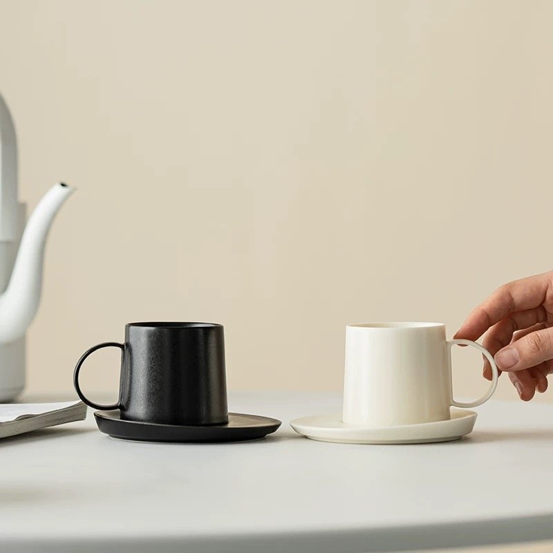 For those who believe “less is more,” the Straight Coffee Mug Set is the undisputed winner. Its perfectly cylindrical design and matte finish offer a Bauhaus-inspired look. It’s the go-to for architects who want their coffee in a cup to look as structured as their blueprints. The saucer is flat and wide, doubling as a sleek coaster for pastries.