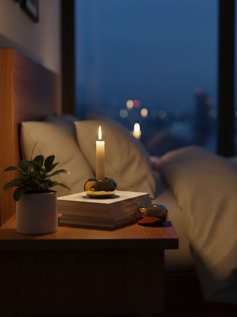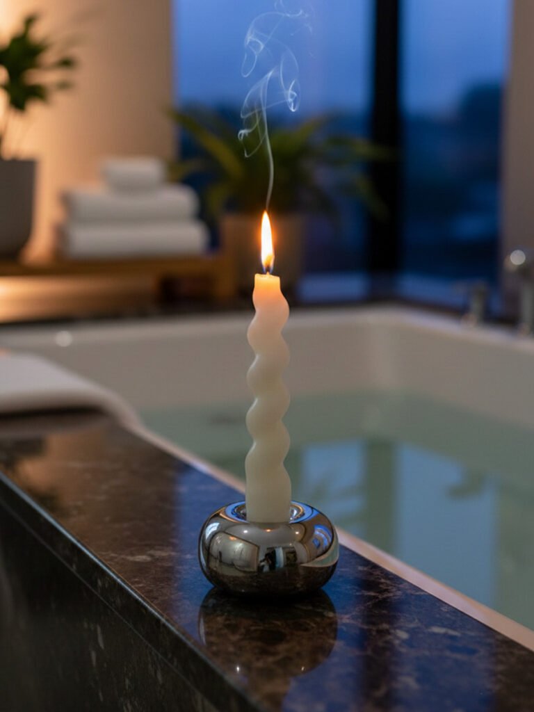 - The Serene Sanctuary (Bathroom): Imagine a long soak in the bathtub, with a single taper candle flickering in a silver doughnut holder. The metallic surface glimmers against the water, turning a simple bath into a five-star spa experience.