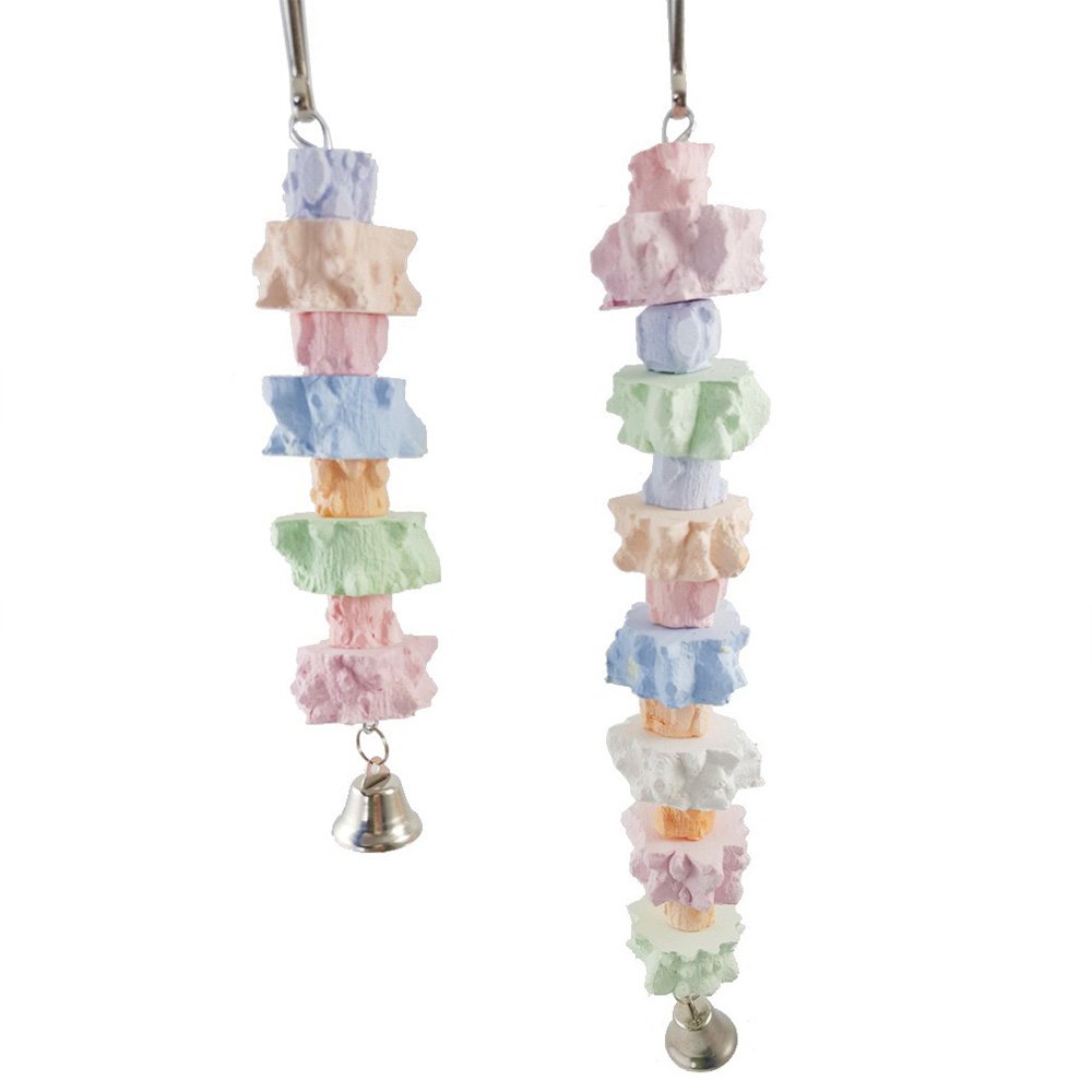 2 Pcs Calcium Stone Block Bird Parrot Hanging Chew Toys Grinding Teeth Natural Minerals with Bell for Parakeets, Cockatiels, Conures, Budgies, Lovebirds