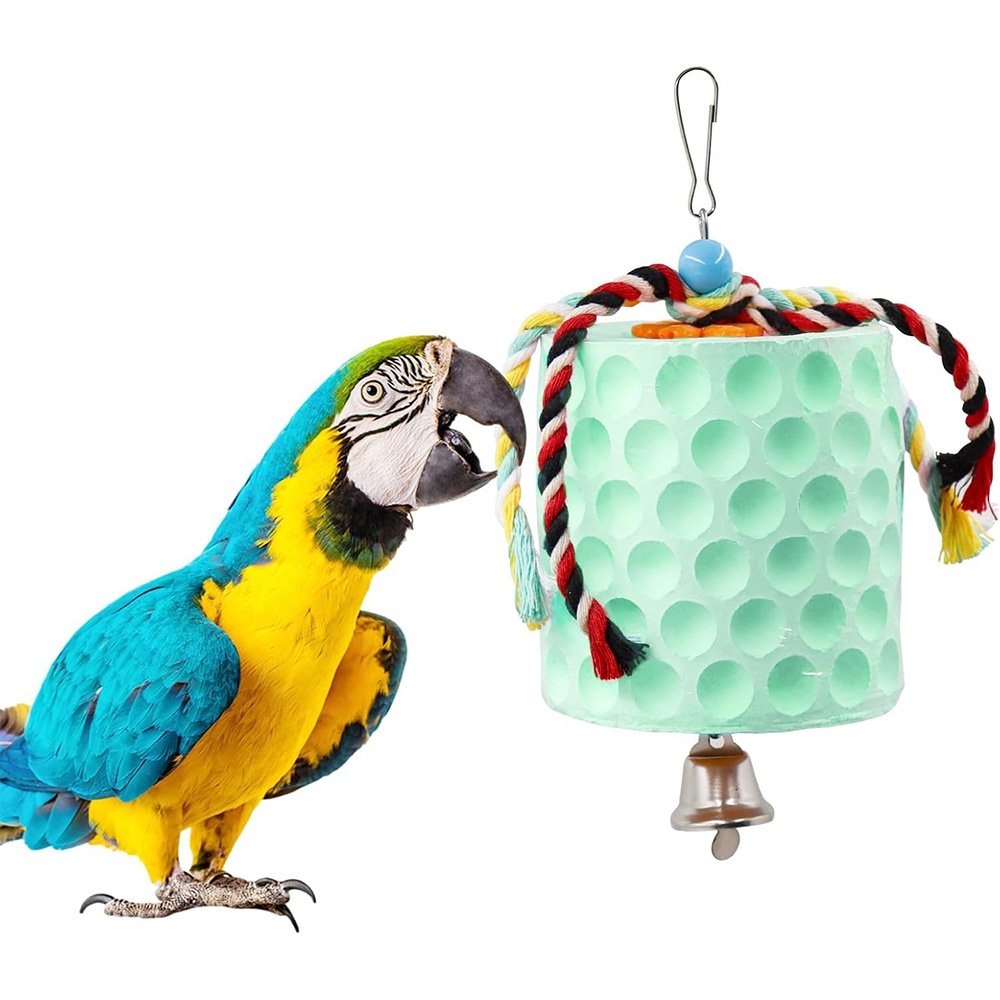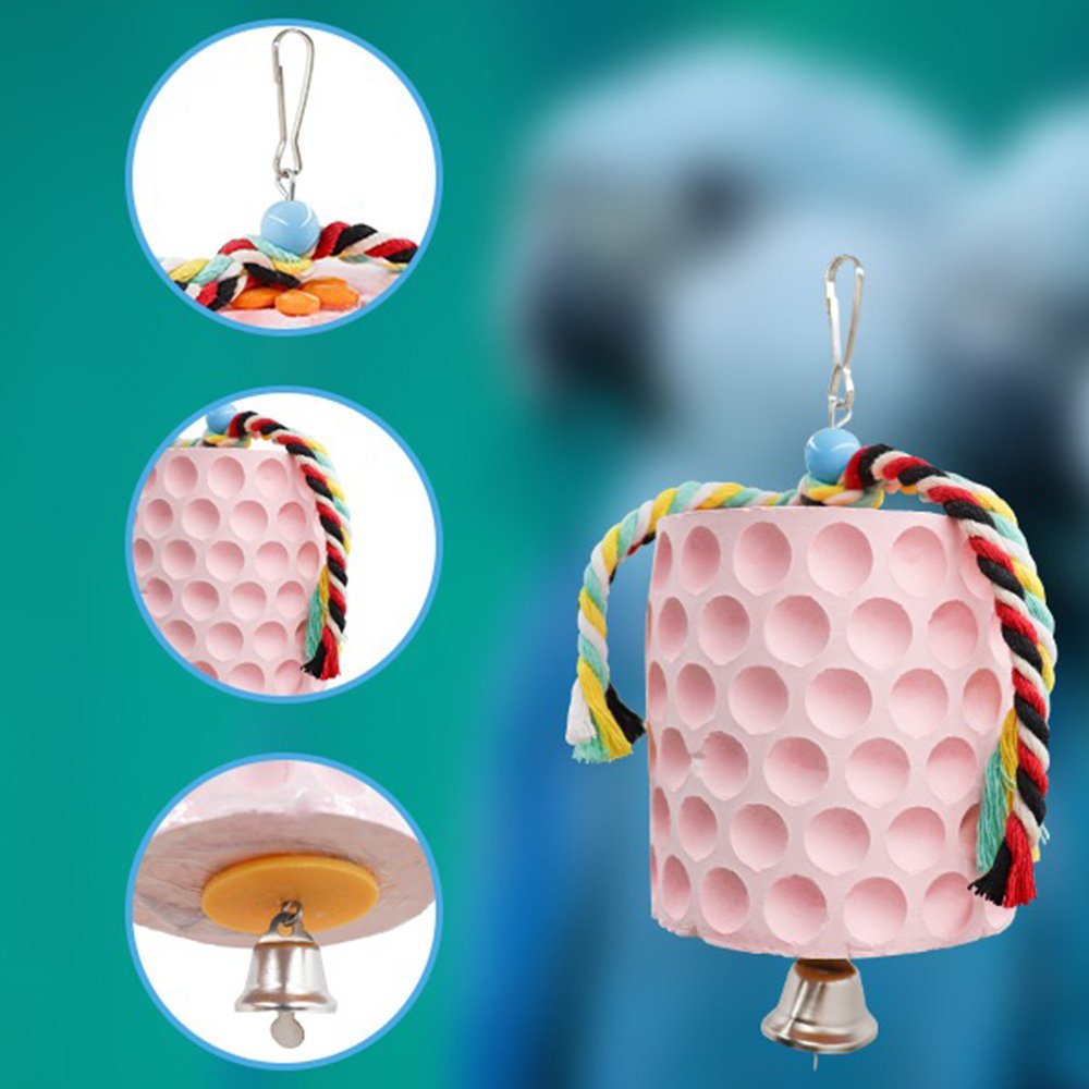 Calcium Cylinder Bird Chewing Toy, Parrot Beak Grinding with Bells, Bird Cage Accessories, Cage Toys for Cockatiel Parakeet Parrot Budgies Rat Hamster Chinchilla Rabbit Bunny African Grey