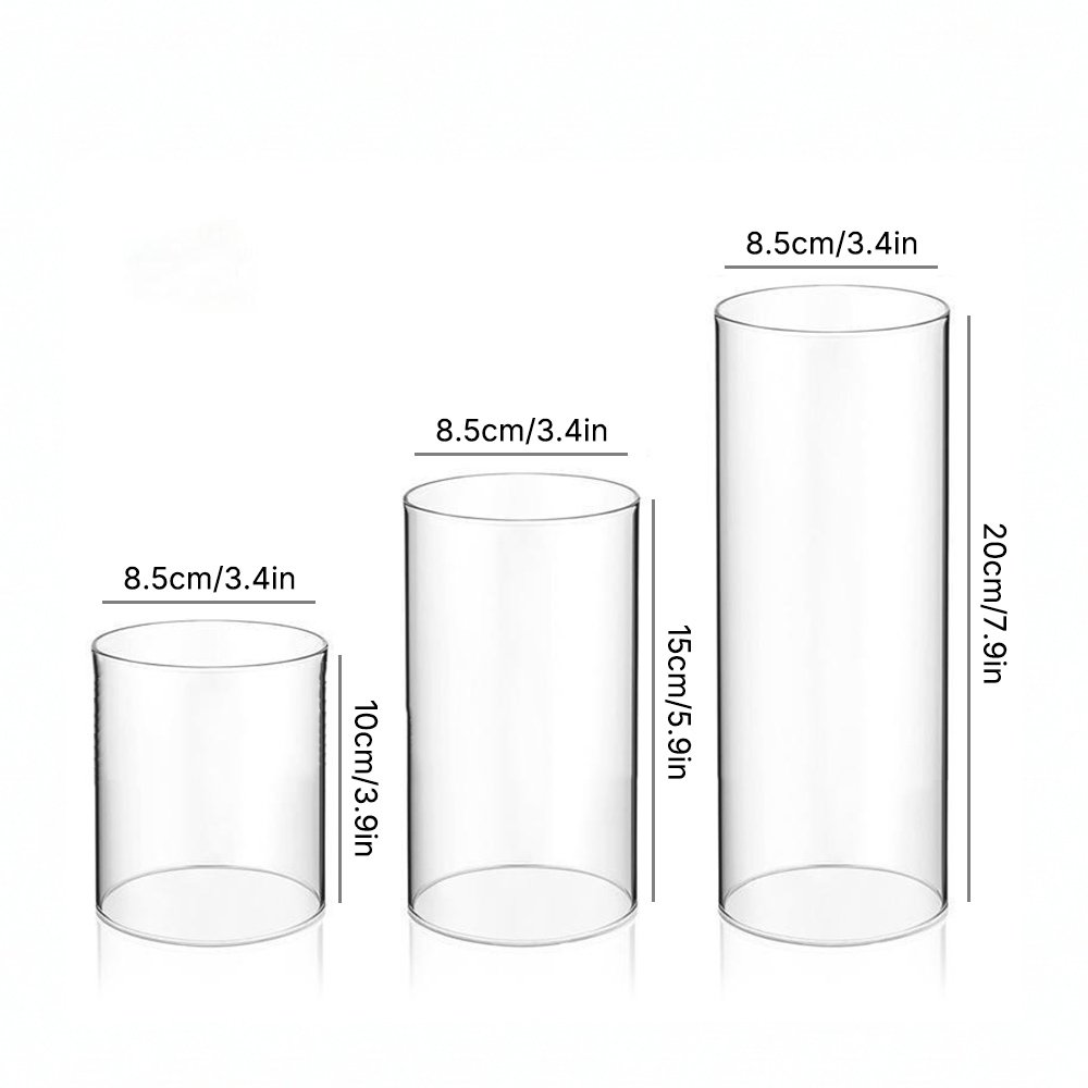 Fillable Borosilicate Cylinder Glass Clear Candle Holder – Hurricane Glass Chimney for Floating Candles, Flowers & Table Centerpieces – Diameter 3.4″ (Set of 3 Sizes)