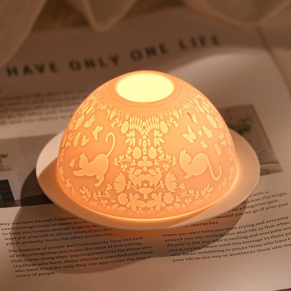 Bring elegance and warmth to your home with our handcrafted white porcelain candle holders. Each piece is delicately embossed with Paris Tower and cat motifs, turning a simple tealight into a work of art. The smooth porcelain surface combined with intricate embossing allows candlelight to diffuse softly, creating a serene, artistic glow that enhances any living room, coffee table, shelf, or sideboard.